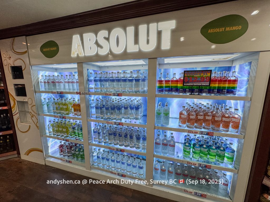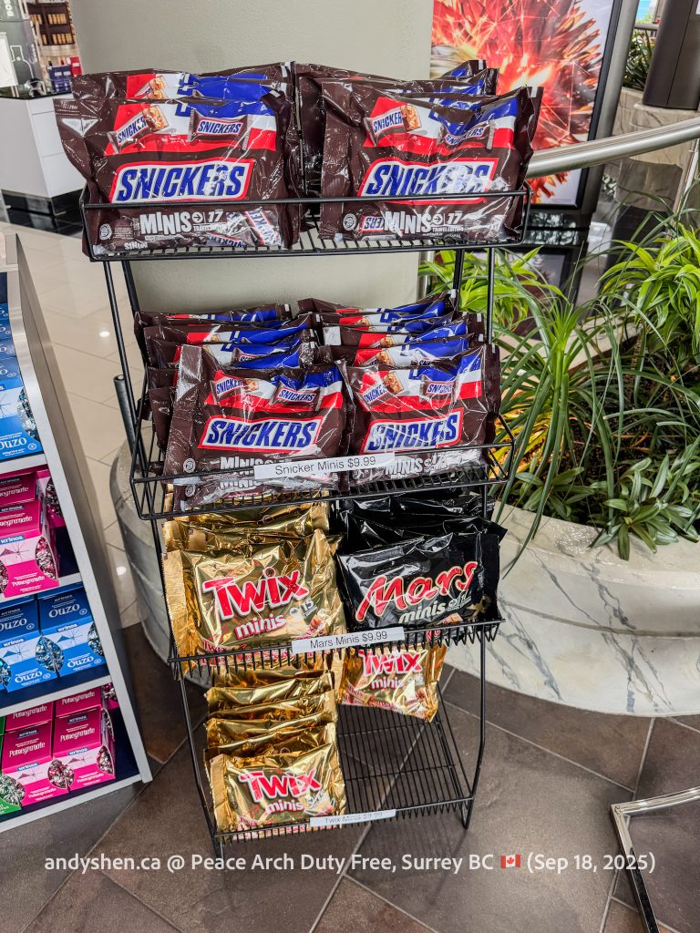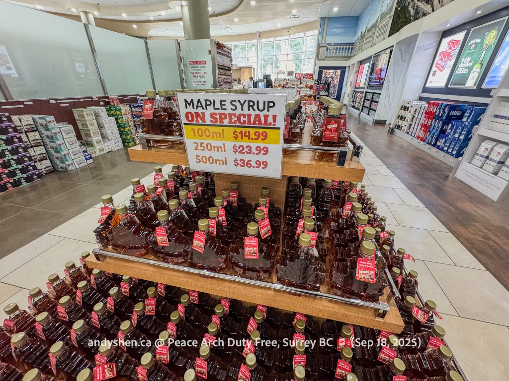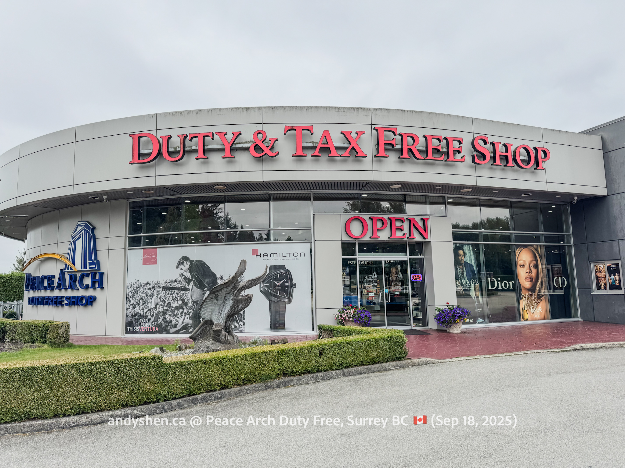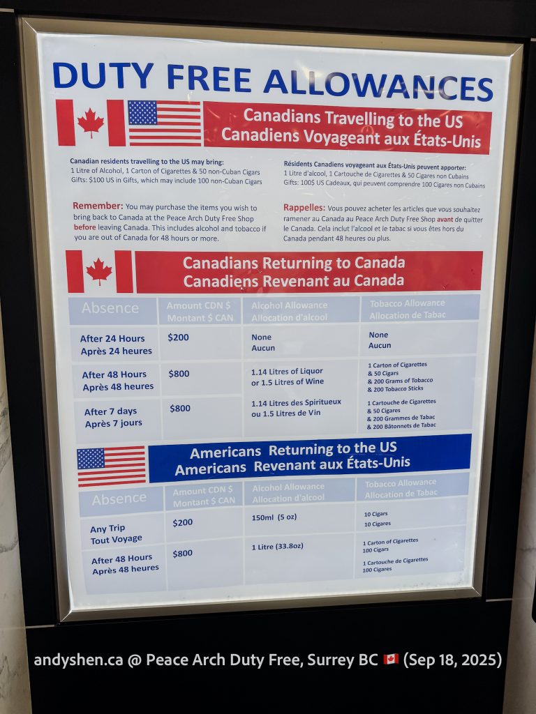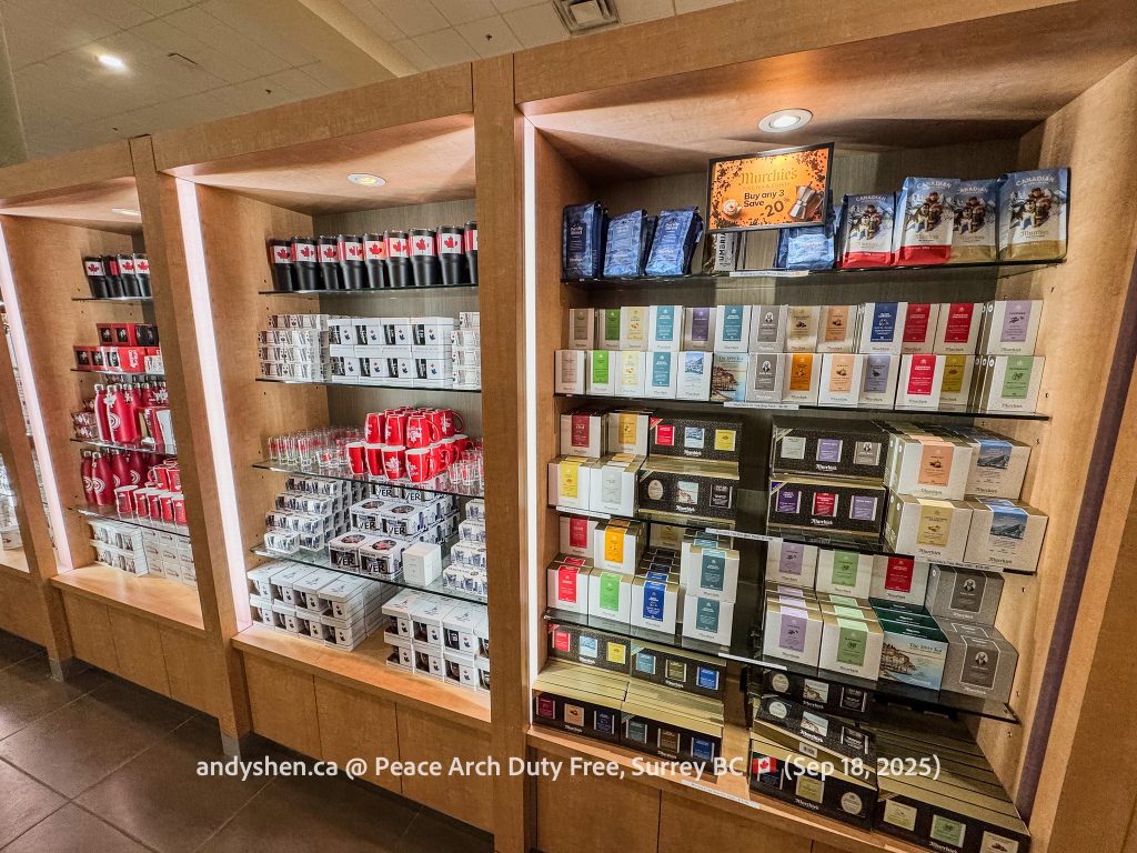 On September 18, I was heading down to the United States so decided to stop by Peace Arch Duty Free, since we stopped by West Coast Duty Free last time. Peace Arch Duty Free is on the Canadian side of the Douglas (Peace Arch) Point of Entry for the United States. Shoppers who shop at Peace Arch Duty Free must proceed to the US CBP Point-of-entry. Goods purchased here can be brought back into Canada, but must be declared with both CBP and CBSA.