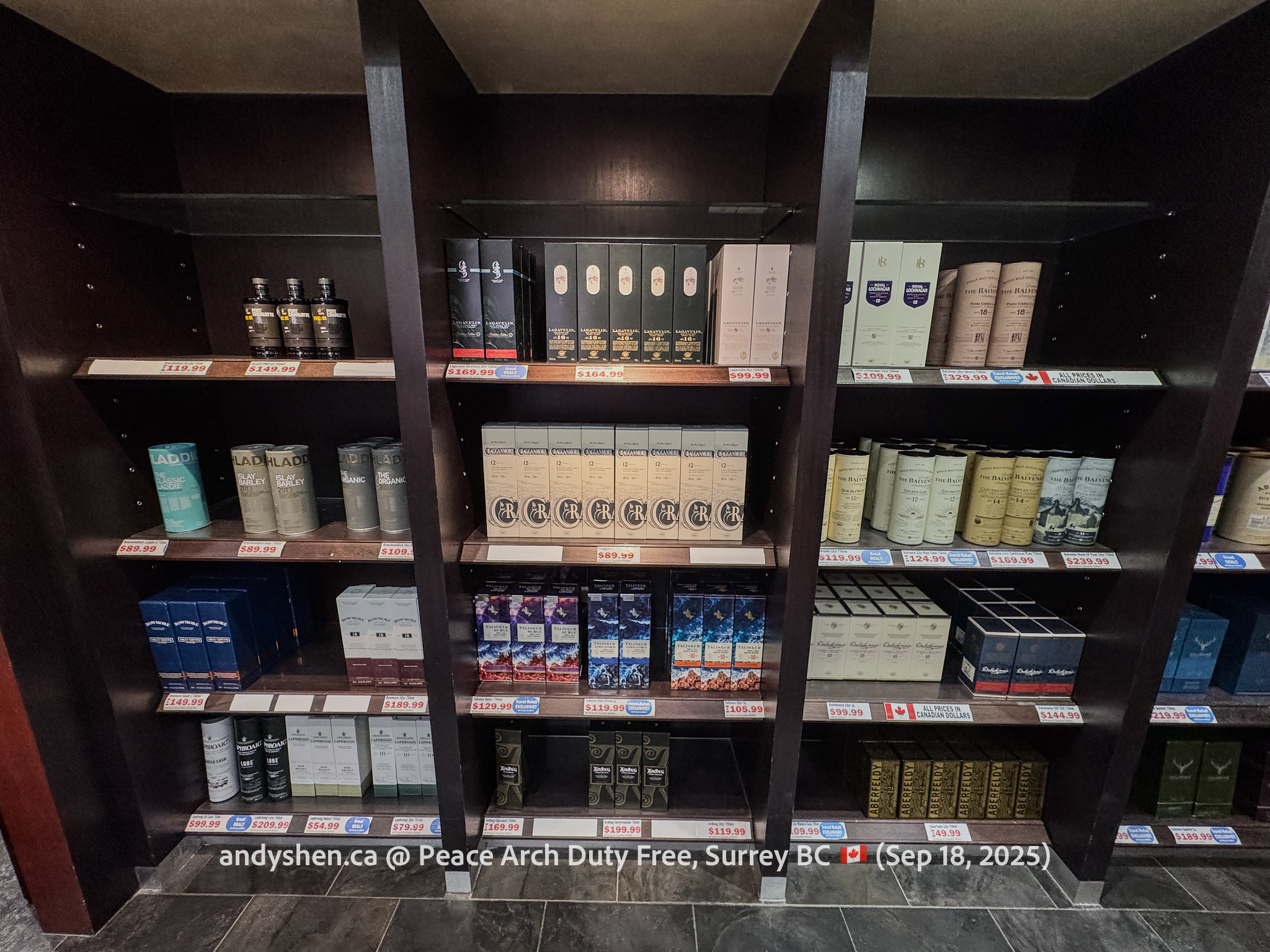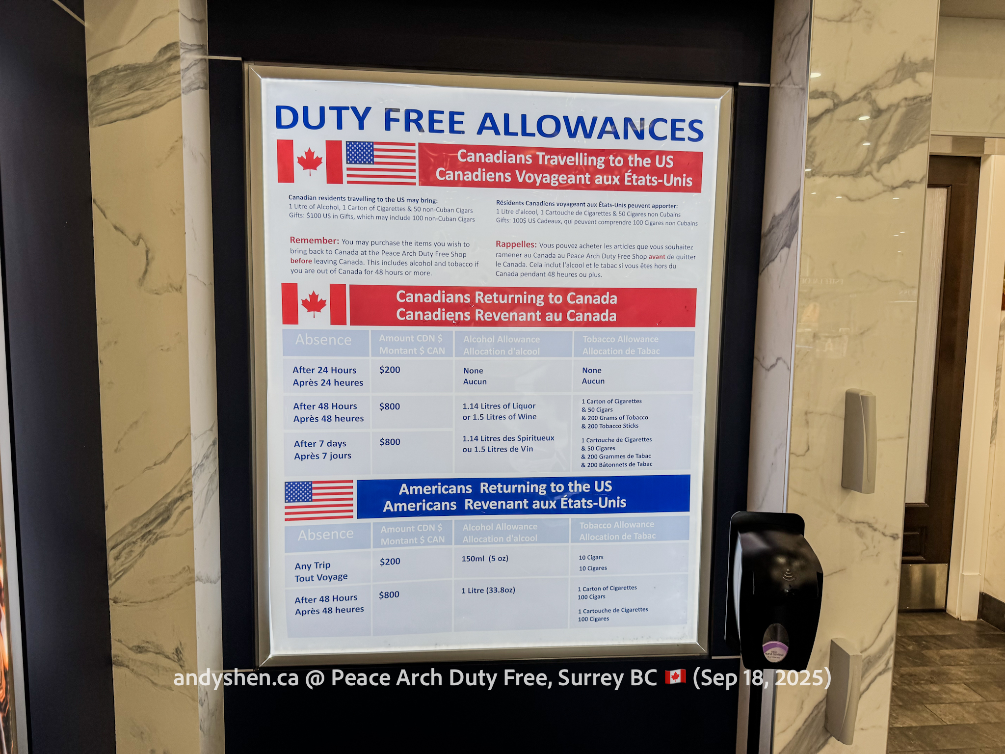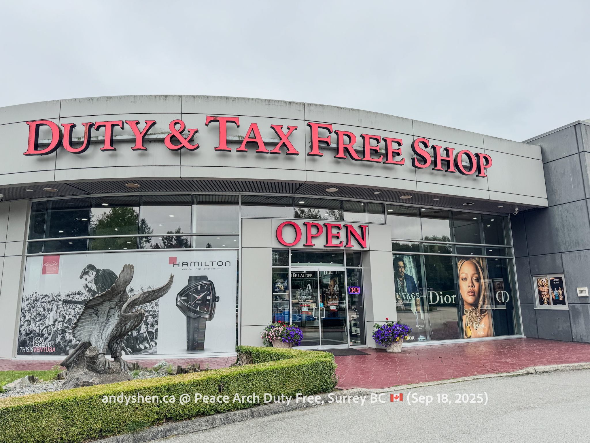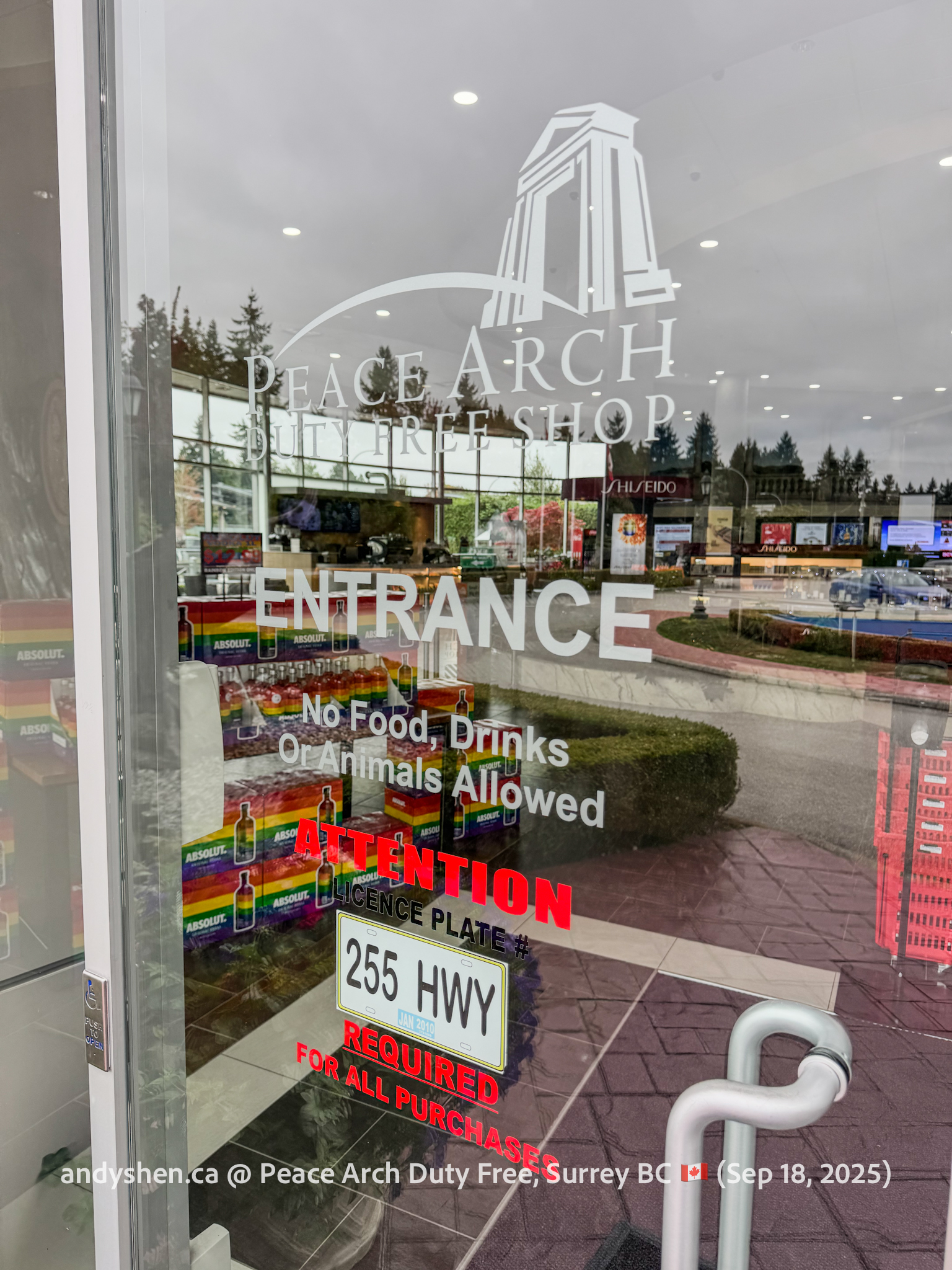 On September 18, I was heading down to the United States so decided to stop by Peace Arch Duty Free, since we stopped by West Coast Duty Free last time. Peace Arch Duty Free is on the Canadian side of the Douglas (Peace Arch) Point of Entry for the United States. Shoppers who shop at Peace Arch Duty Free must proceed to the US CBP Point-of-entry. Goods purchased here can be brought back into Canada, but must be declared with both CBP and CBSA.