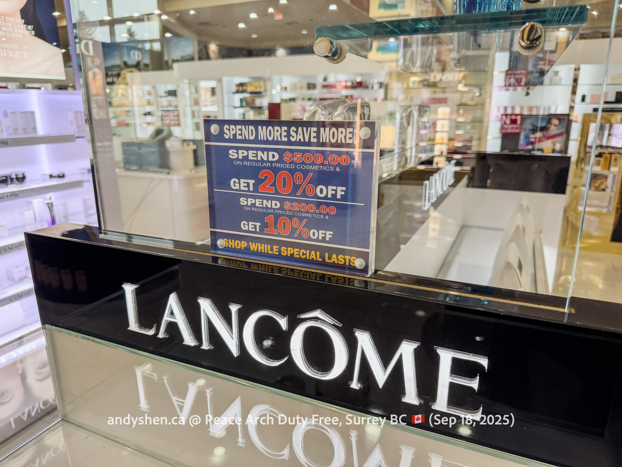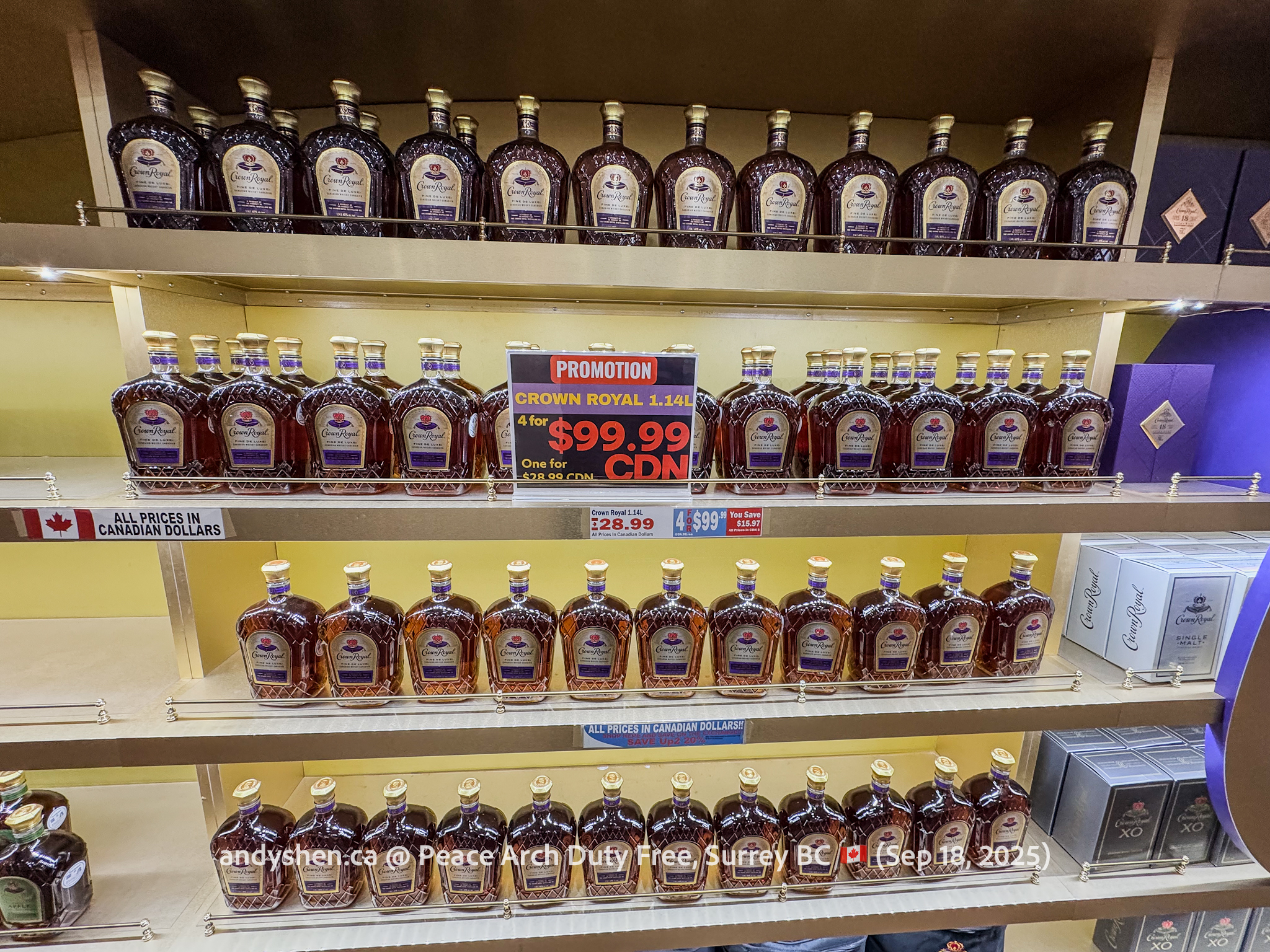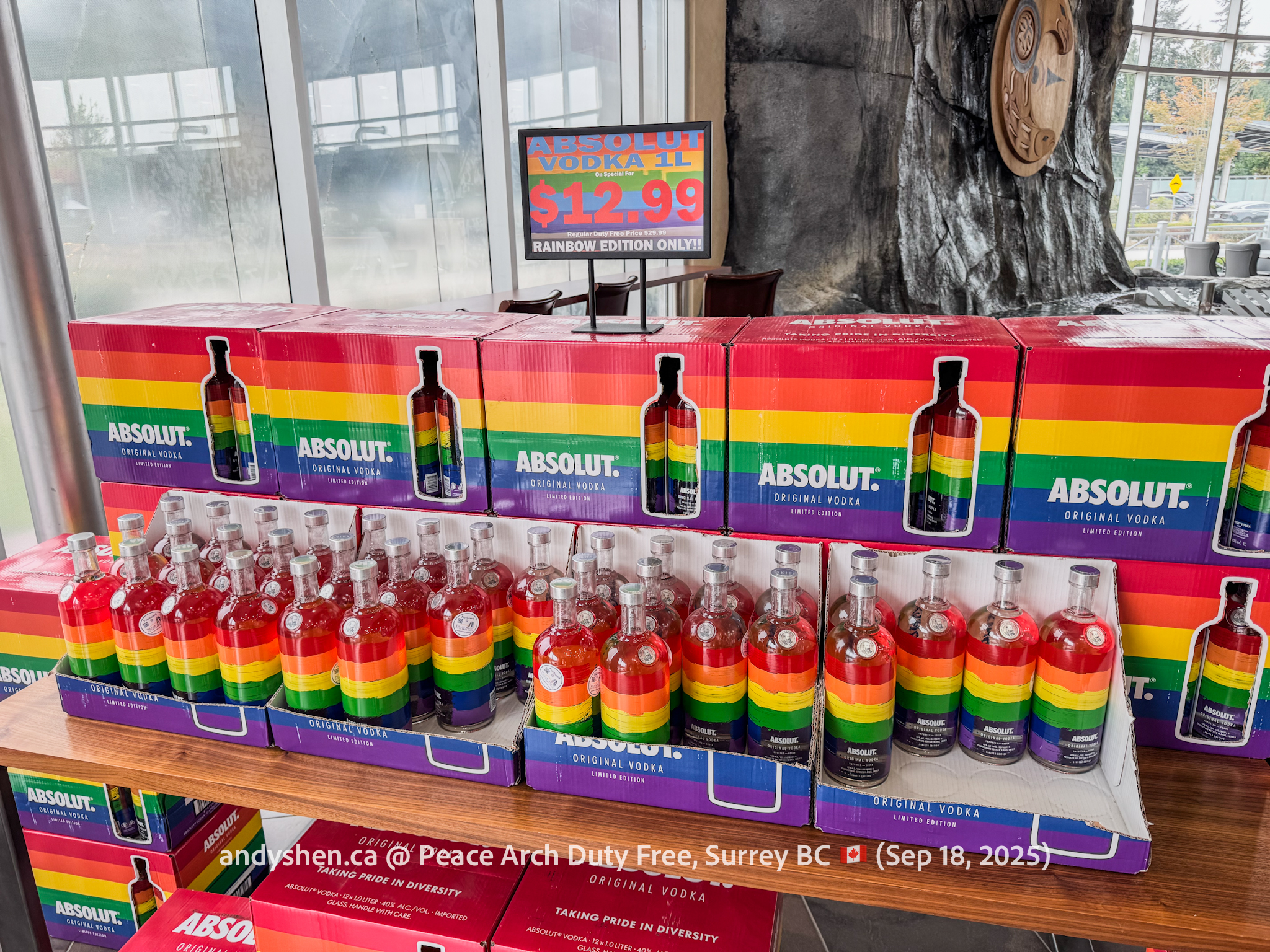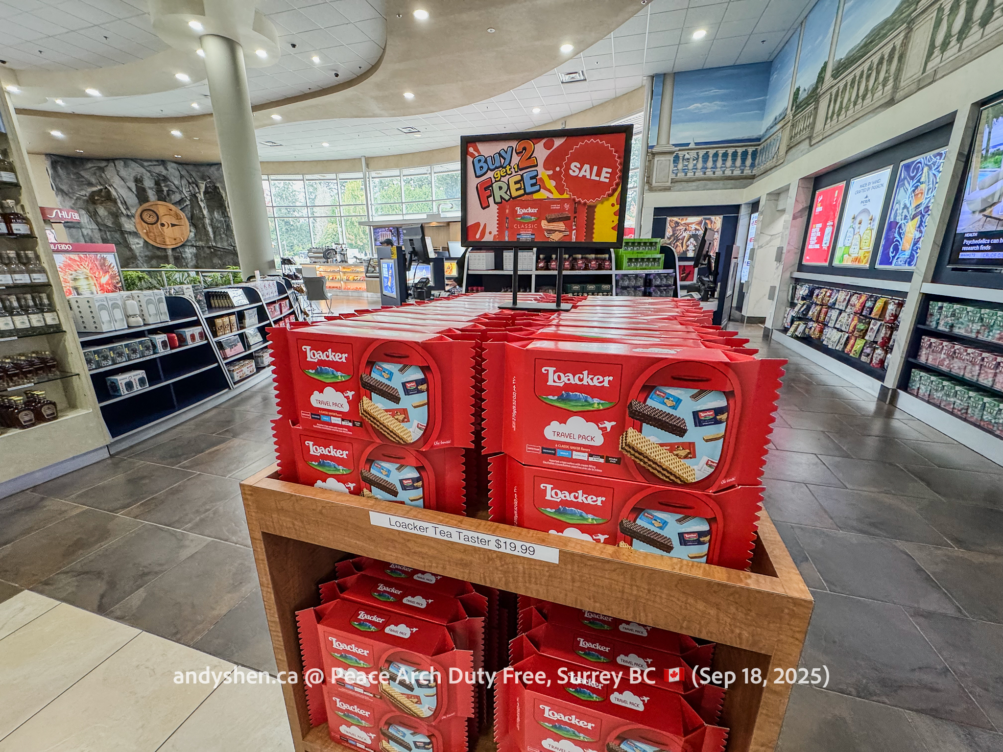 On September 18, I was heading down to the United States so decided to stop by Peace Arch Duty Free, since we stopped by West Coast Duty Free last time. Peace Arch Duty Free is on the Canadian side of the Douglas (Peace Arch) Point of Entry for the United States. Shoppers who shop at Peace Arch Duty Free must proceed to the US CBP Point-of-entry. Goods purchased here can be brought back into Canada, but must be declared with both CBP and CBSA.