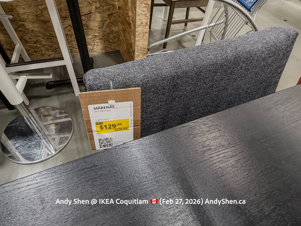 On February 27, we visited IKEA to make some returns and for frozen yogurt in the cafe. The AS-IS section of IKEA is a section by the check-out where IKEA tries to sell in-store demo models that have been discontinued or returns that appear to be in resellable condition. From what people tell me, sometimes you can score big with heavy markdowns as well as additional discounts on top.